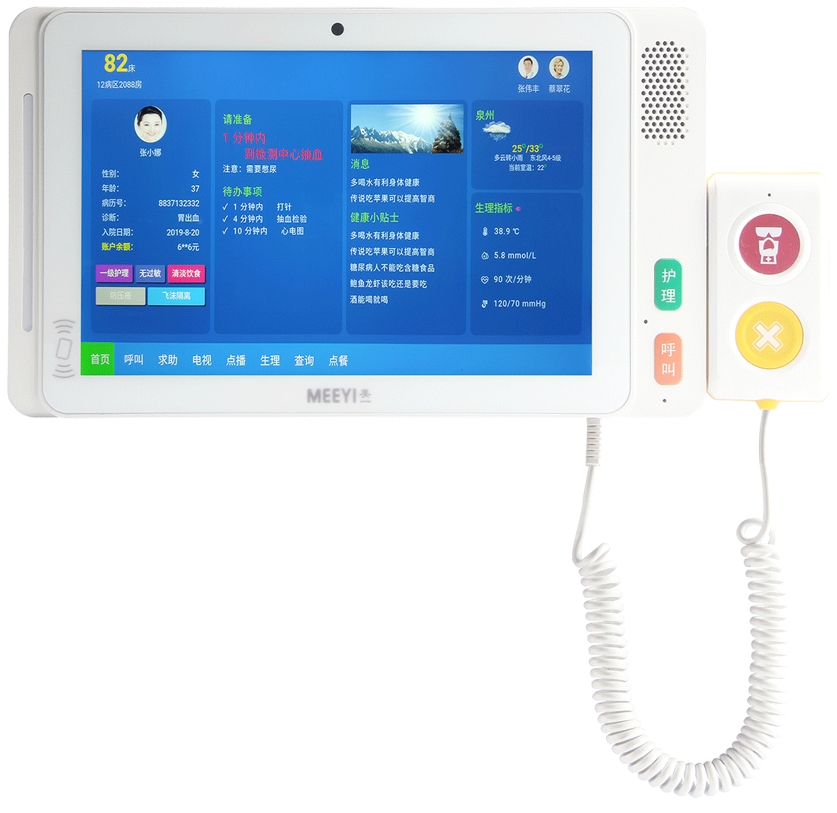 2. 集成呼叫手柄,快速呼叫护士站,并进行双向通话;